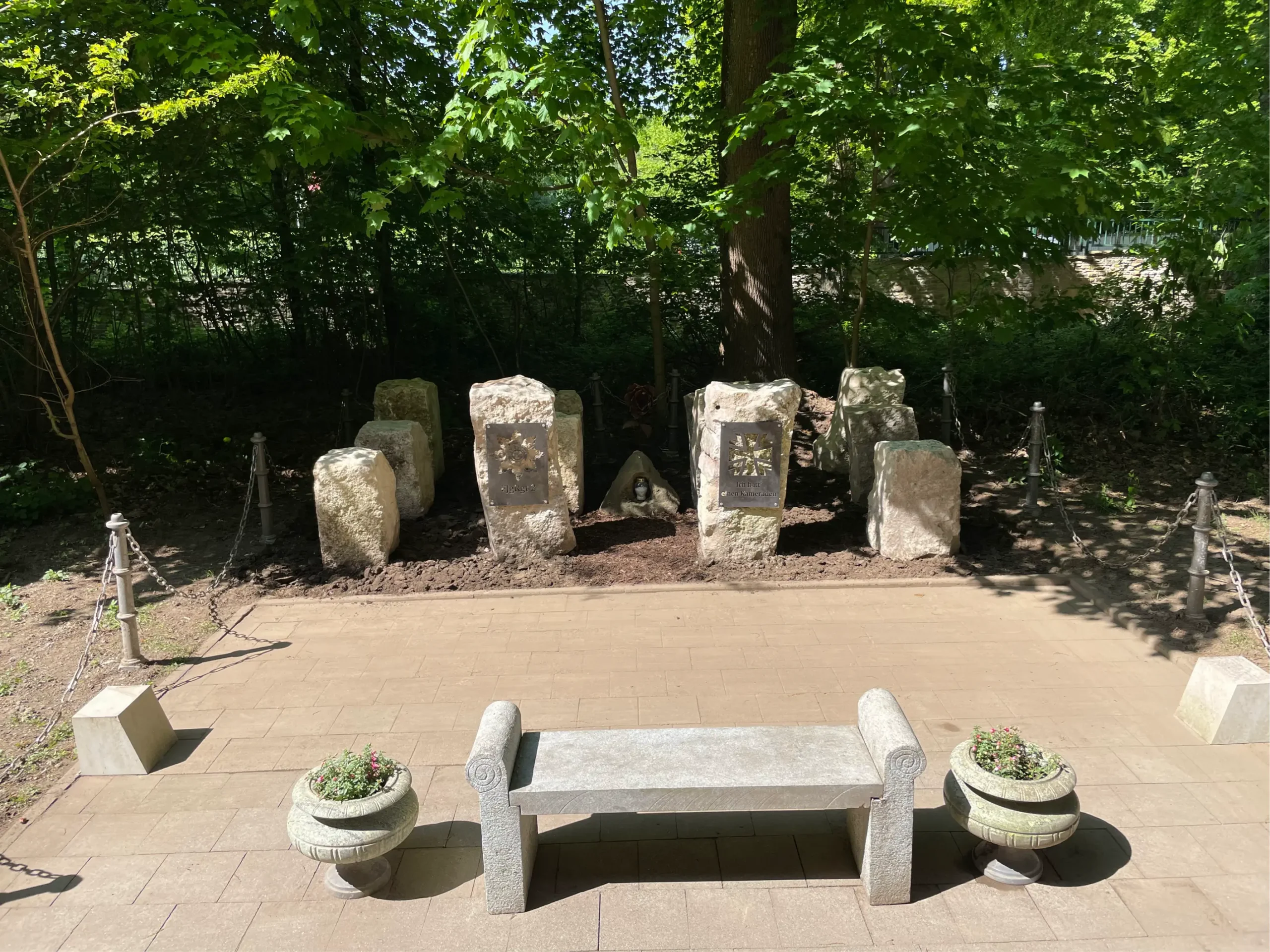 Der die Gedenkstätte überschirmende ca. 100 Jahre alte Ahorn verkörpert Ruhe, Gelassenheit und Harmonie. Er bietet dem Ehrenhain einen imposanten und würdigen Rahmen.