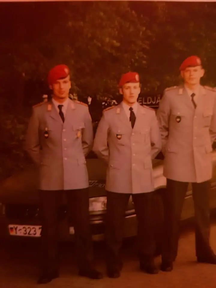 Der damalige Hauptgefreite Mike Dupont (Bildmitte) wurde in den Jahren 1998 bis 2001 als Kraftfahrer der Kommandeure der Feldjägerbataillone 730 und 252 verwendet: Er fuhr sie sicher und zuverlässig über tausende Kilometer unfallfrei.
